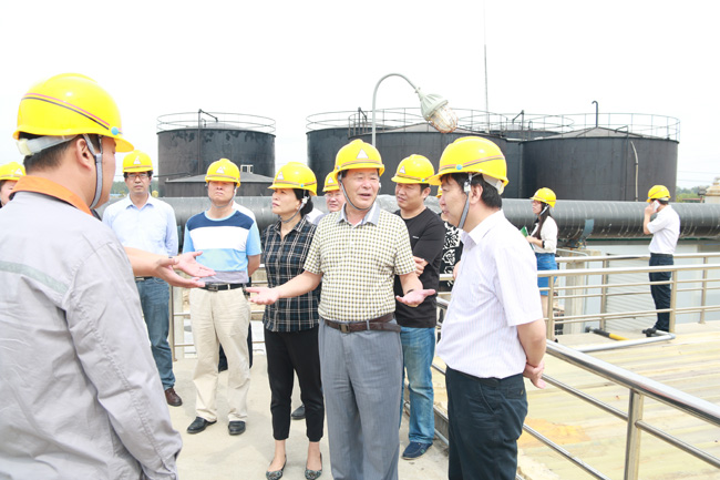 大丰区人大常委会主任吴家祥、大丰区环保局局长夏恒林、港区环保分局局长谭剑一行来丰山集团视察指导环保工作
